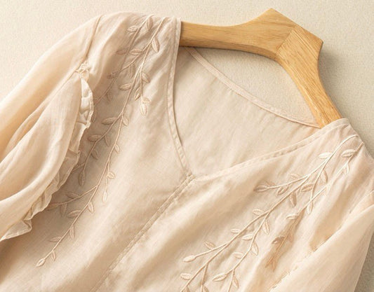 Stylish Women’s Cotton Top with Delicate Embroidery | Relaxed Fit