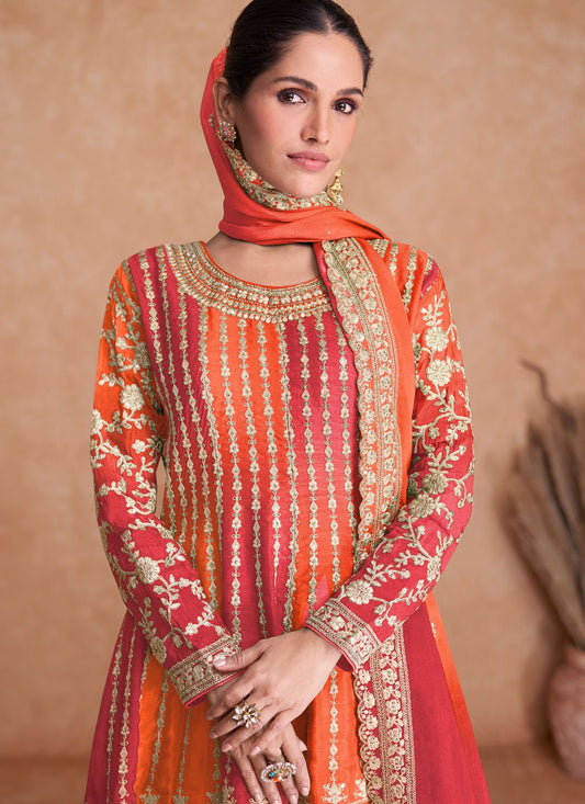 Orange Chinon Fabric Partywear Sharara Salwar Suit