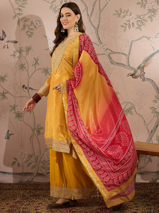 Yellow Coluer Chinon Fabric Partywear Palazzo Salwar Suit