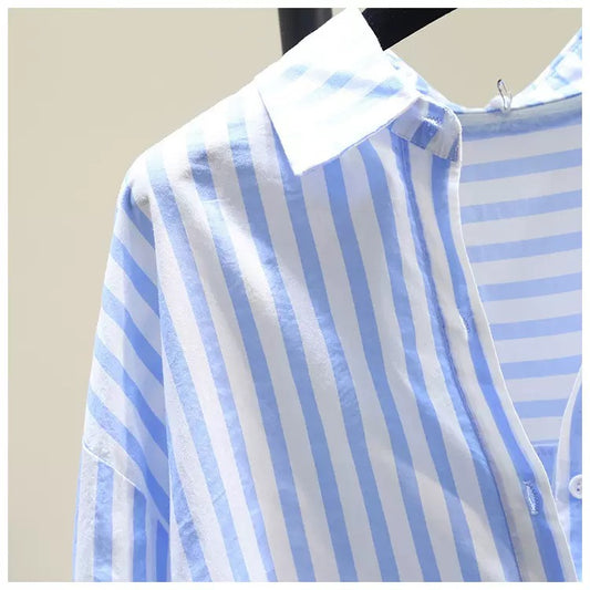 Women’s Casual Loose Fit Striped Cotton Shirt with Front Pocket